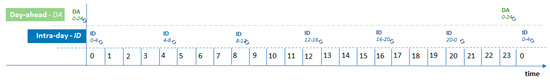 Analyzing current DR programs operation, we have identified that two-time horizons are relevant (see Figure 5) for potential usage of forecasting results to enact the DC to participate as a prosumer: