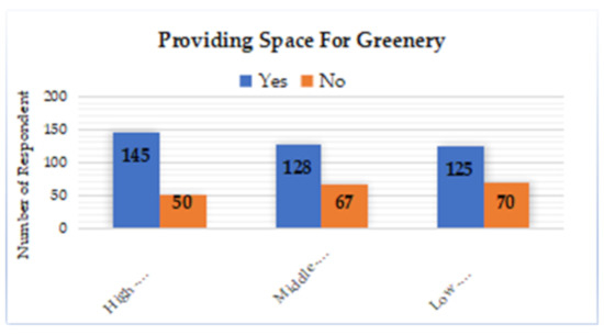 People in rural areas considered green-roof to be less useful, especially in low-income communities. The low-income community response was significantly less supportive in terms of an active role to participate in providing area on the roof of their dwellings, as shown in Figure 9. Low-income people felt that green-roof innovation in dwellings was neither necessary nor urgent. Another aspect that lacked support from low-income people in rural areas was the level of awareness that is still not widespread in the importance of green-roof.