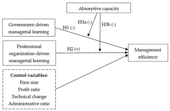 A firm’s absorptive capacity strengthens the negative relationship between government-driven managerial learning and management efficiency.