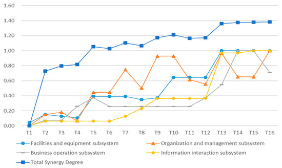 | Time | Facilities and Equipment Subsystem | Organization and Management Subsystem | Business Operation Subsystem | Information Interaction Subsystem | Total Synergy Degree |