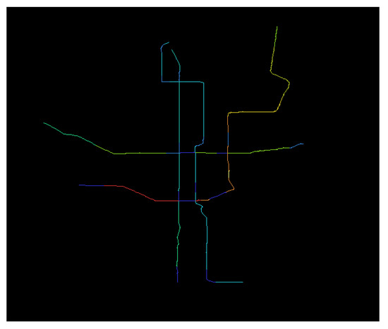In Figure 4, the lines in different colors represent the lines connected by the calculated integration of each metro station. In order to distinguish the common station from the transfer station, the transfer number is taken as the weight of the station, and the metro accessibility is finally obtained.