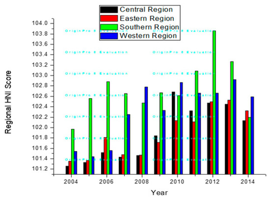 Figure 2 elucidates the regional human needs in the US through the human necessities index score. Higher HNI scores in the south and the west reveal an elevated level of requirements compared to the central and eastern areas. As historically, the southern, western, and central US has been prone to climatic extremes, mostly droughts and floods. Furthermore, poverty has been the highest in the South and rising in the West [