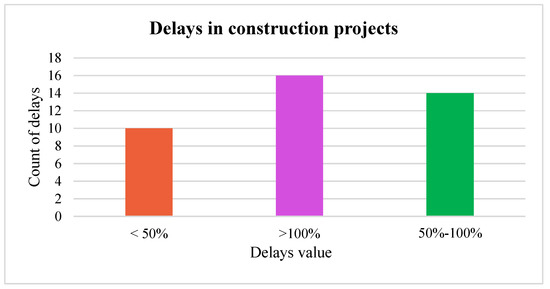 - Al-Momani, A.H. Construction delay: a quantitative analysis. Int. J. Proj. Manag. 2000, 18, 51–59. [Google Scholar] [CrossRef]