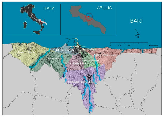 The capital of Apulia in Southern Italy, Bari city is extended over 117,38 km2 with 324,198 citizens (ISTAT 2011). It is subdivided into five districts characterized by the presence of natural, cultural, and social resources to be reactivated, able to offer numerous ES (Figure 1).