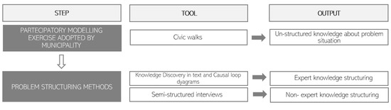 In the present study, in order to overcome these limits, information emerged in narrative patterns deriving from CWs has been recorded and formalized using ad-hoc structuring platforms, particularly relevant to PSMs modelling area. Specifically, a qualitative analysis of the information deriving from CWs through knowledge discovery in text (KDT) was needed to build causal loop diagrams (CLDs) and semi-structured interviews (SSIs). KDT was oriented to structure problem framework [39] and build CLDs, whereas SSIs held a dual function of validating CLDs and involving a more significant sample of citizens. Figure 7 shows the developed methodology.