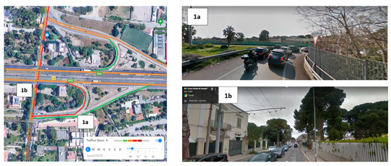 Despite these assumptions, the analyzed CWs present a preponderance of interventions by the expert knowledge. The CW analyzed here has crossed areas coming from two planning seasons of the city of Bari. The first one comes from the urban plan drafted by Calza-Bini and Piacentini in 1954 characterized by a traditional urban design (concentric and equidistant road links, called mediane, connected by radial roads). Figure 8 taken from a Google satellite shows the average morning traffic flow of a road that does not relate to the expanding Bari of the post-war years (Figure 8(1a,1b)).