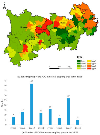 Quantity and spatial distribution of the PCG indicators coupling type in the YREB.