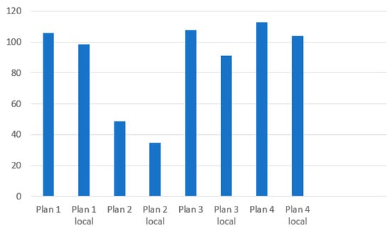 In this study, we present the results of four constructions in four scenarios. The results are marked with a combination of a number of plans and a scenario number. According to this, the results, which are marked as Plan 1 s1, belong to construction Plan 1, and these results were performed in Scenario 1.