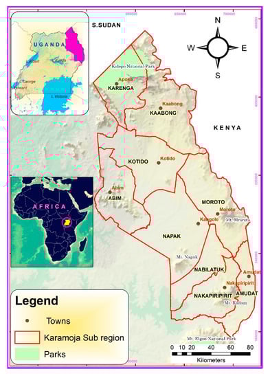 - Uganda Investment Authority. Karamoja Investment Profile 2016; Uganda Investment Authority: Kampala, Uganda, 2016; p. 32. Available online: https://www.ugandainvest.go.ug/wp-content/uploads/2016/04/uia-Karamoja-profile.pdf (accessed on 12 March 2017).