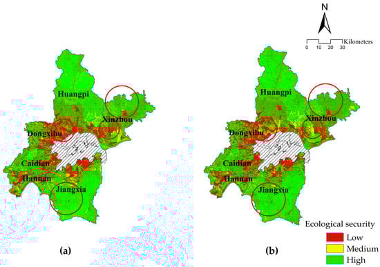The rapid process of urbanization and industrialization brings unprecedented social and economic development to cities all around the world. However, threats to the ecological environment come at the same time [39,40,41,42]. Upon realizing the seriousness of the ecological threats, the conception of sustainable development was systematically proposed by the United Nations conference on environment and development in 1992 to call for ecological protection. For decades, ecological protection has been one of the leading development tasks in most countries, and people’s attitudes have shifted from only seeking ecological benefit to implementing the coordinated benefit of society, economy, and ecology. As an arrangement plan to maintain and protect the ecological balance in a particular region based on understanding and evaluating the relationship between land use and human [43], ecological planning plays a vital role in protecting the regional ecological environment and promoting sustainable development. With the ability to evaluate ecological capacity, estimate development potential, and rate sustainability, ecological security assessment is one of the primary and fundamental stages of ecological planning.