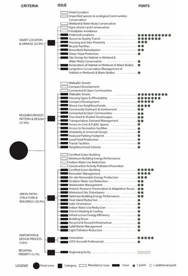 Hierarchical diagram with the structure of LEED Neighborhood Development (LEED-ND). Adapted from [].
