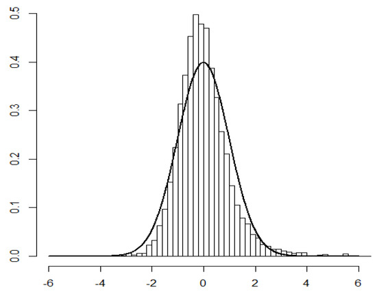 Histogram of the residuals from model (1) versus standard normal curve. Source: own elaboration.