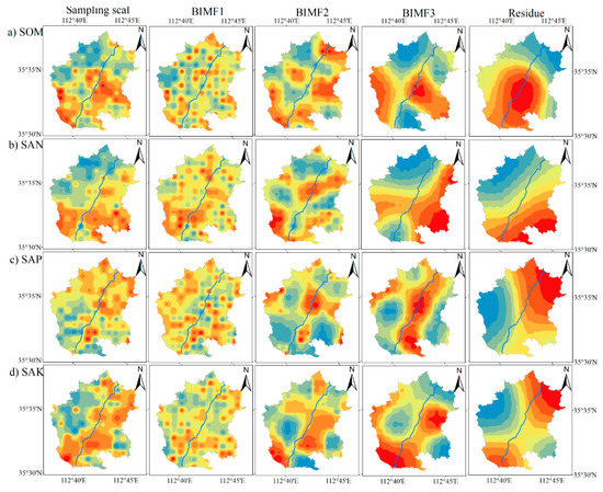 - Huang, J.; Wu, C.; Minasny, B.; Roudier, P.; McBratney, A.B. Unravelling scale- and location-specific variations in soil properties using the 2-dimensional empirical mode decomposition. Geoderma 2017, 307, 139–149. [Google Scholar] [CrossRef]