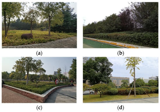 Samples of urban green spaces in Luohe, (a) Public park; (b) Protective green space; (c) Square green space; (d) Attached green space.