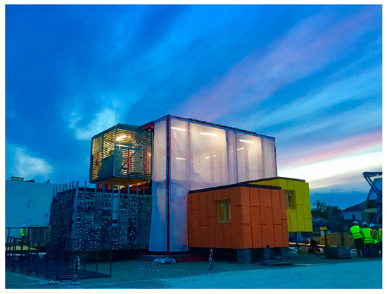 - Terrados-Cepeda, F.J.; Baco-Castro, L.; Moreno-Rangel, D. Patio 2.12: Vivienda prefabricada, sostenible, autosuficiente y energéticamente eficiente. Participación en la competición Solar DecathlonEurope 2012. Inf. Construcción 2015, 67, 538. Available online: http://informesdelaconstruccion.revistas.csic.es/index.php/informesdelaconstruccion/article/view/4231/4888 (accessed on 12 December 2019). [CrossRef]