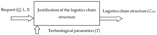When solving problems at the macro-logistical level, it is advisable to use the total costs of the entities that form the LC as the efficiency criterion (this indicator is considered as the objective function in [19,20,24,25], and is also used as a sub-criterion in [26,27]). In this case, the problem of choosing the optimal LC structure can be formalized, as follows: