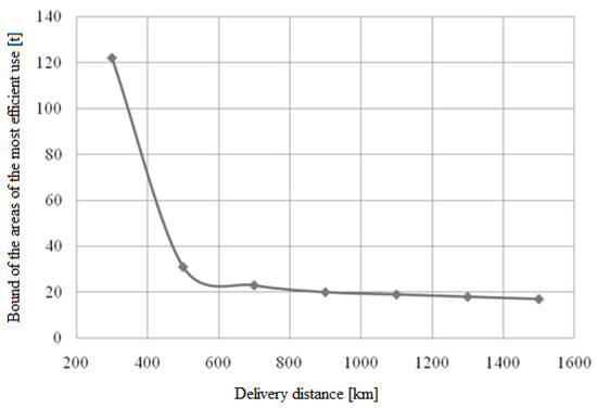 It should be noted that the delivery distance that is covered by various carriers for the considered LC variants is determined based on the parameter . Thus, for the 2F- and 1T-structures, the following condition is fulfilled: