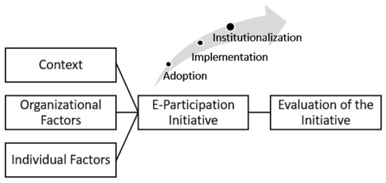 - Panopoulou, E.; Tambouris, E.; Tarabanis, K. Success factors in designing eParticipation initiatives. Inf. Organ. 2014, 24, 195–213. [Google Scholar] [CrossRef]