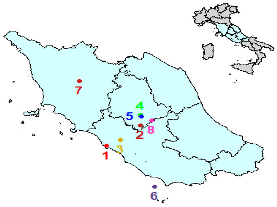Figure 5 clearly shows that each of the clusters does not possess any kind of spatial clustering: all 8 cartograms consist of very dispersed points (farmhouses), which always belong to all of the territorial subdivisions: Northern, Central and Southern Italy.