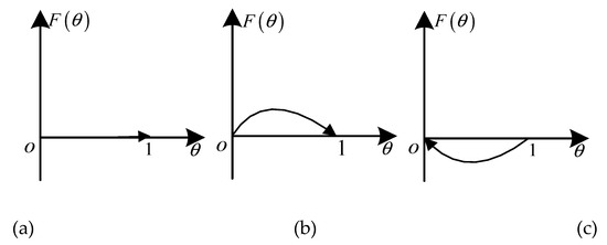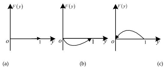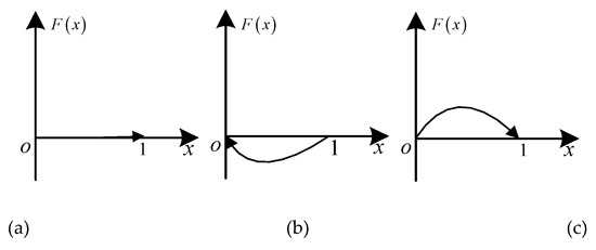 In the case of , let , two stable points of can be obtained: 0 and 1. It can be inferred from Equation (14) that