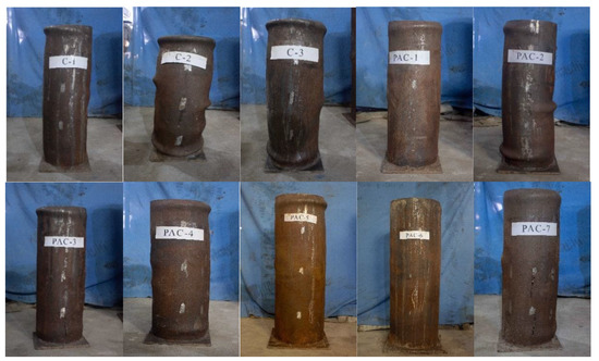 With rapid development of infrastructures, the consumption of building materials increases fastly. A series of environmental issues caused by production of building materials are becoming more and more prominent. How to reduce the consumption of building materials has become one of the problems that needs to be solved urgently in construction industry. On the basis of the characteristic of PAC, applying PAC in structures may be one of the effective ways to cut down the consumption of cement in structures. Despite some existing literatures report that the PAC has been already used in underwater construction, massive concrete structures, concrete track construction and nuclear power plant structures [26,27,28], there is still a lack of investigation on application of PAC in widely used structures, such as building and bridge. As a new type of structural forms, CFST structures are widely used in buildings and bridges in recent years. Combined with the characteristic of PAC, using PAC to replace NC in preparation of CFST structural members may be benefit to reduce the consumption of cement in core concrete and will achieve a number of economic and social benefits. It will be a positive attempt to promote energy conservation and emission reduction in the construction industry. However, very few existing research is focused on this field, the most relevant research should be reported by Lv et al. [29], in which the bond behavior of PAC-filled steel tube columns has been studied only. It is still difficult to provide a comprehensive guidance on application of PAC-filled steel tube structures. Thus, it is meaningful to carry out the investigation on the structural properties of PAC-filled steel tube (PACFST) structures.