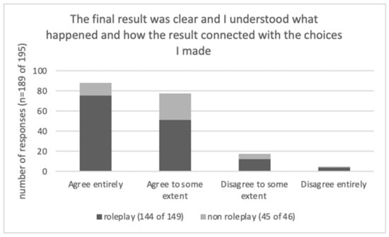 Distribution of responses to the question ‘The final result was clear and I understood what happened and how the result connected with the choices I made’.