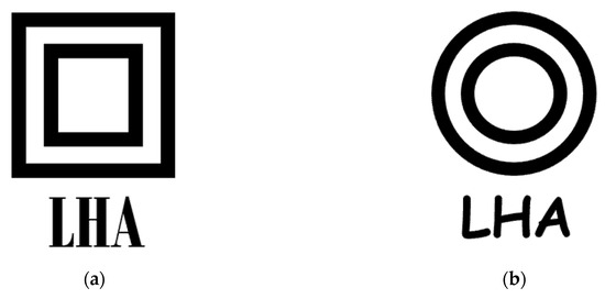 In order to avoid potential confounding influences of participants’ brand familiarity and preference, we chose a virtual household cleanser manufacturer named LHA and two virtual household cleansers. First, participants were shown a brief introduction of LHA, which contained a sentence “LHA is a manufacturer specializing in different kinds of household cleansers” and a picture of LHA’s logo. We used circular and angular logos developed by Jiang et al. [17], and we added “LHA” in various fonts at the bottom of different logo (see Figure 1). Following exposure to the introduction, participants were asked to imagine that they were going shopping for a household cleanser. They were presented with two options: one was an industrial strength household cleanser that was more effective (e.g., “kills 99.9% of germs”), whereas the other one was a natural household cleanser that was more eco-friendly (e.g., “made from biodegradable nontoxic materials”) [28]. The prices of two household cleansers were equal (42 RMB). Then, participants were asked the following question: “If you need a household cleanser, which of these two products would you buy?” On the next web page of the experiment, participants were asked to recall and briefly describe the logo shape of LHA for a manipulation check. Finally, demographics data including age and gender were collected.