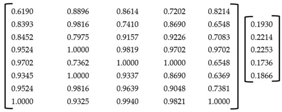 Table 11 shows the decision matrix for all criteria and dimensions, normalizing the scores by the maximum score for each criterion.