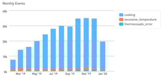 About 3800 (30%) of all Geocene missions belong to HAPIN. HAPIN’s globally-distributed field staff have synced approximately 155 million unique data points from these missions. HAPIN has deployed Geocene’s cloud analytics to detect 330 thousand events of various kinds ranging from cooking, excessive probe temperature, and probe errors (Figure 9). Each day, HAPIN syncs about 500 thousand new data points to the platform, and the analytics detect about 1000 new events daily.