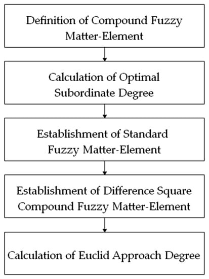 As shown in Figure 2, obtaining the Euclid approach degree through a fuzzy matter-element model is as follows: