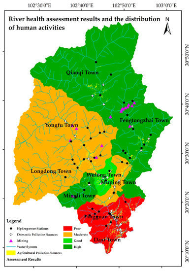 Combined with the social and economic activities of towns in Baoxing County, the evaluation results are further analysed in order to find out the key factors affecting river health.