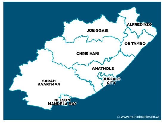 The Eastern Cape Province is the second largest in the country with the third largest population and is one of the two poorest in the country [12]. The unemployment rate is generally high in the whole province, with the manufacturing sector being the dominant employer [12]. The province is divided into six districts and two metropolitan areas, which include the Buffalo City and Nelson Mandela Bay. It has 37 local municipalities, with the majority located in the peri-urban areas.