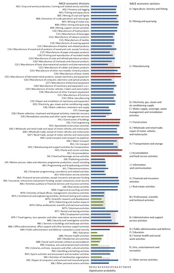 3.2. Probability of Digitalisation by Economic Branches