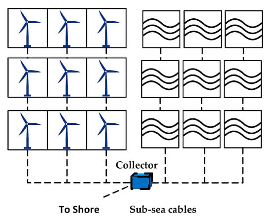 A node is a single collecting point within an array [45]. An array connection could be a proper alternative when multiple devices are connected together in an array. There are different array schemes that are chosen based on geotechnical conditions and resource characteristics. The size of an array is limited by the acceptable voltage drop along cables and the array’s maximum capacity [24].