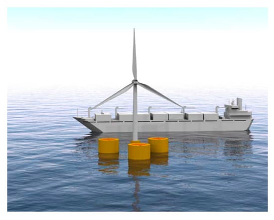 This was developed by Sea for Life Lda. It has a fixed foundation and combines a wind turbine with a Wave Energy Converter (WEC), and other uses could be added, as shown in Figure 10 [24].