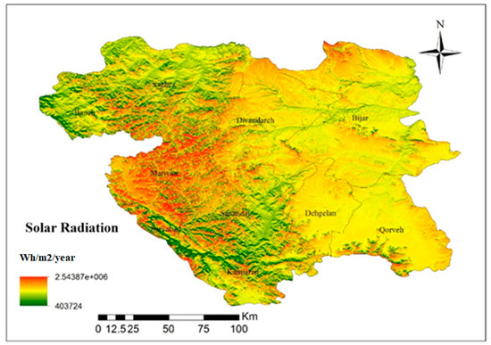 In this paper, a GIS-based evaluation and integration method [29,30] is used for assessing the solar resource in Kurdistan. GIS is a powerful computer tool that enables the user to record, store, and organize databases, and analyze spatial and geographical data in different coordinate systems. Due to the nature of renewable energy, it is necessary to take several geographical analyses in their resources assessment [31]. In this paper, different data for the evaluation of solar resources in Kurdistan were obtained mostly from the Renewable Energy and Energy Efficiency Organization of Iran (Satba) [32] and also other national and International agencies and organizations. The solar irradiances were recorded in more than 150 stations in Iran during last 10 years by Satba and many other local power companies.
