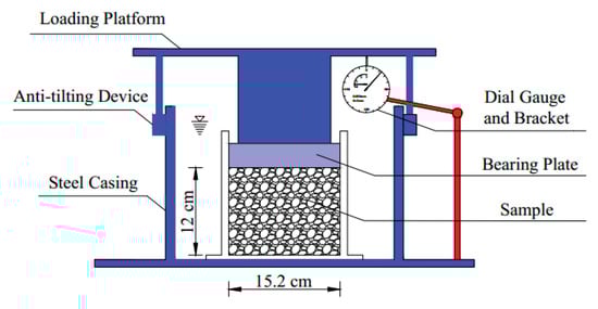 The samples are prepared according to the field compactness, which was 95%. Firstly, the compacted samples are placed in the steel sheath and, if saturated tests are to be performed, water is added to the steel sheath until the sample is immersed. After 96 hours, it is considered that the sample is in a saturated state. Finally, the load is applied and the deformation of the sample is recorded, as shown in Figure 4.
