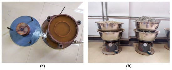 A CBR test is used to assess the carrying capacity of CDW mixture, and the detailed CBR test is carried out based on JTG E40–2007 [39]. The samples with different ratios are compacted in layers, then the samples are immersed in water for 4 days and four nights. After the swelling capacity of the samples is measured, the penetration test is carried out to analyze the CBR value. The control parameters are shown in Equations (1) and (2):