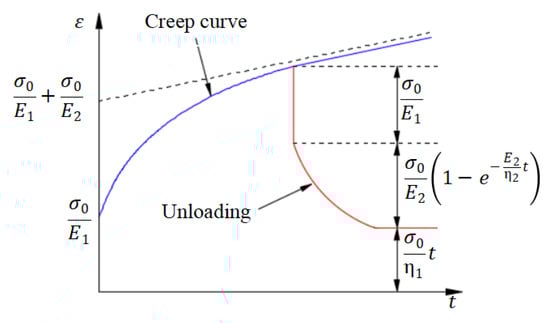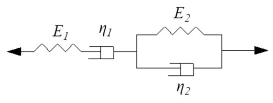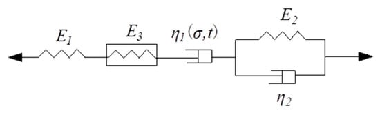 Take Equation (12) into Equations (7) and (8), then add Equation (10) (i.e., ), the creep equation of the improved Burgers model can be obtained, and its model is shown in Equation (13) and Figure 16.