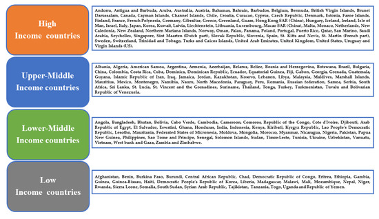 - The World Bank. New Country Classifications by Income Level: 2019–2020. Available online: https://blogs.worldbank.org/opendata/new-country-classifications-income-level-2019-2020 (accessed on 28 February 2020).