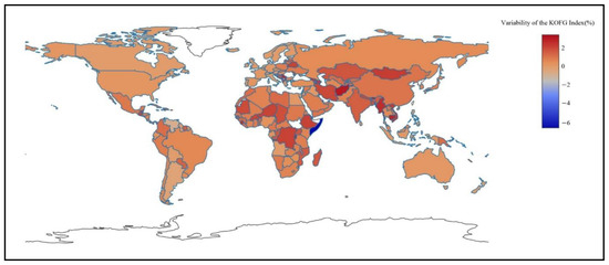 Clorophet map of the variability of the KOF index in the period 2000–2016. Source: Authors’ own elaboration.