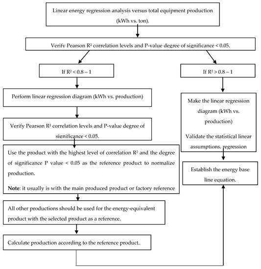 However, if a baseline is not established correctly, then the wrong data could be obtained for Key Energy Indicators, energy saving potentials, and energy budgets. Thus, an adequate energy baseline approach requires comparing the energy performance of a piece of equipment, process, plant, or enterprise, in relation to the levels of the production variable [29].