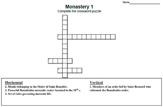 - A crossword was prepared ad hoc on knowledge of the spoken information in the video relating to medieval monasteries.