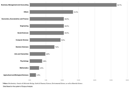 To meet the purpose of the literature review, as mentioned previously, we classified this corpus by the subject area of these 58 papers. This study employed Scopus’s analysis system of the search results. The literature has mainly covered 11 subject areas. Of these subject areas, Others consist of Biochemistry, Genetics & Molecular Biology, Earth & Planetary Sciences, Environmental Science, as well as Materials Science.