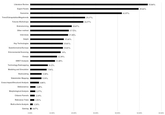 Frequency of use for 25 foresight research methods (Adapted from [], which is based on EMFN and SELF-RULE).