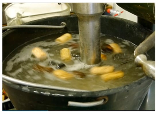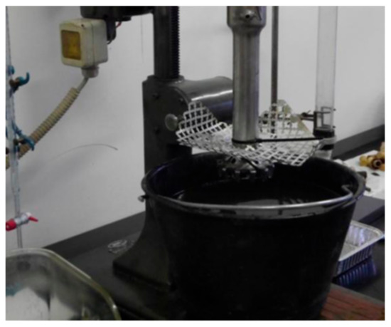 The bath extractor (Figure 3) represents a new laboratory test for lightweight plastic separation (sinking) of synthetic and cork stoppers (floats) needing only water to execute the separation, without the addition of chemical agents to improve the separation. The instrumentation is composed of a stator with a rotor inside (with an average rotational velocity of 1900 rpm), a grid and a tank containing water. The currents generated by the rotation of the rotor within the stator attract downward materials that are characterized by a density (ρ) slightly lower than those of water density (ρ = 0.8 − 0.9), while lighter materials float (ρ = 0.3 − 0.5). The rotor–stator system is essential for the generation of currents favorable to this kind of separation.