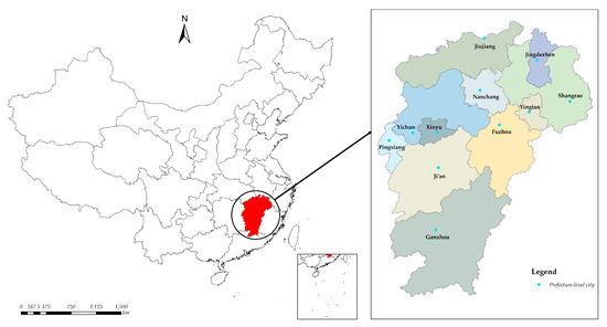 Figure 1 shows its location. Jiangxi is in central China with an administrative area of 166,900 km
