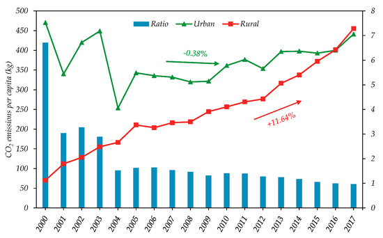 2 emissions. Simultaneously, more scholars were also awareness of the urban–rural gap or dual society in China, thereby they attempted to research Chinese residential CO
