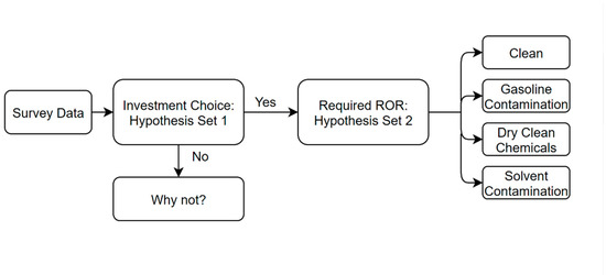 Given the theoretical framework described in Section 2 and the survey data presented in Section 3, two sets of testable hypotheses were formulated. Figure 1 is a visual representation of the analytical process. The decision of whether to invest in contaminated properties is first explored, and then, given an individual is willing to invest, what return on investment is required to incentivize a developer to work with brownfields.
