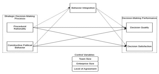 We draw from the above studies that findings on SDMP are influenced by country and organizational specific characteristics and goals for strategic decision-making. Regarding the connotation of the SDMP, Papulova and Gazova [15] shares a view that the SDMP is a "set of procedures" (decision preparation, alternative formulation, alternative evaluation, strategic selection, etc.). Thus, the researchers believe that the SDMP is a kind of "complex system" (trying to deepen the understanding of the SDMP by extending the analysis level and expanding the content contained in the strategic decision-making process from the perspective of the system). Rajagopalan et al. [16] uses the characteristics of the SDMPs (such as comprehensiveness, rationality, political behavior, participation, conflict) to define "substitution." While each "interpretation" attempts to outline the definition of "what are the SDMPs," the meaning of each perspective seems reasonable and one-sided, which to some extent, increases the ambiguity of the concept of the SDMPs and how it impacts sustainable decision performance. Moreover, the literature on the SDMP has mainly focused on the impact of TMT social psychological process, the role of situational variables [17], and team processes [3] of sustainable decision performance, e.g., [15,18], without considering the team-wide means through which TMTs’ SDMPs influence sustainable decision performance.